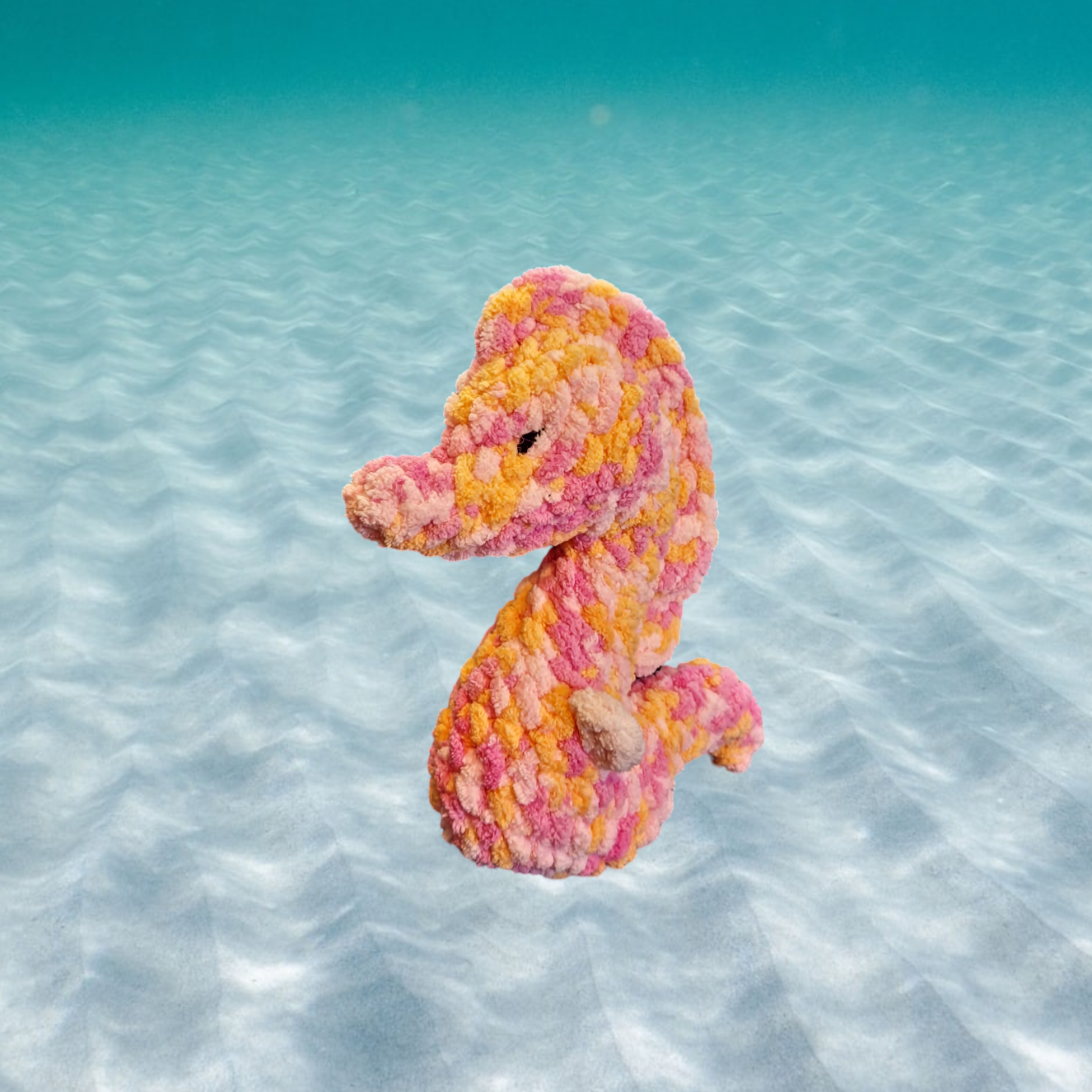 Dive into a world of underwater enchantment with our Coral Whisper Seahorse Rattle! Measuring approximately 6 inches tall and weighing a light 90 grams, this adorable seahorse rattle is the perfect companion for your little one. Crafted with soft, vibrant yarns in a delightful blend of pink, orange, and yellow, it captures the whimsical beauty of coral reefs. The gentle rattle sound inside provides soothing entertainment, making it an ideal toy for curious minds and tiny hands. Whether it's for playtime or nap time, this seahorse rattle is sure to bring joy and comfort to both kids and adults alike. ๐๐ #SteelNStitches #SeahorseRattle #HandmadeWithLove